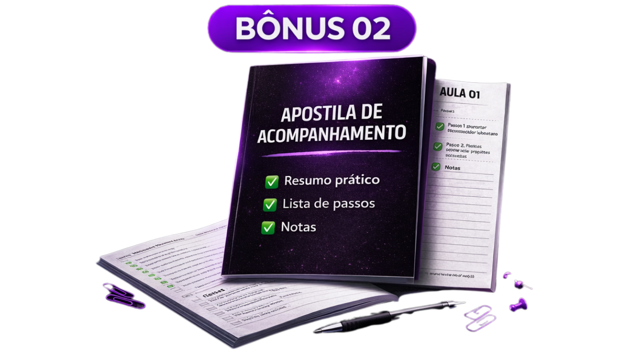 Dentro da Aula você terá acesso ao passo a passo, mas presta atenção eu não vou te ensinar teoria.